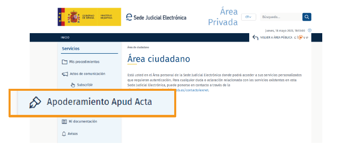 - Dentro del área de ciudadano, selecciona “Apoderamiento Apud Acta”