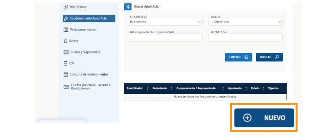 - Pulsa sobre “Nuevo” para iniciar un apoderamiento.